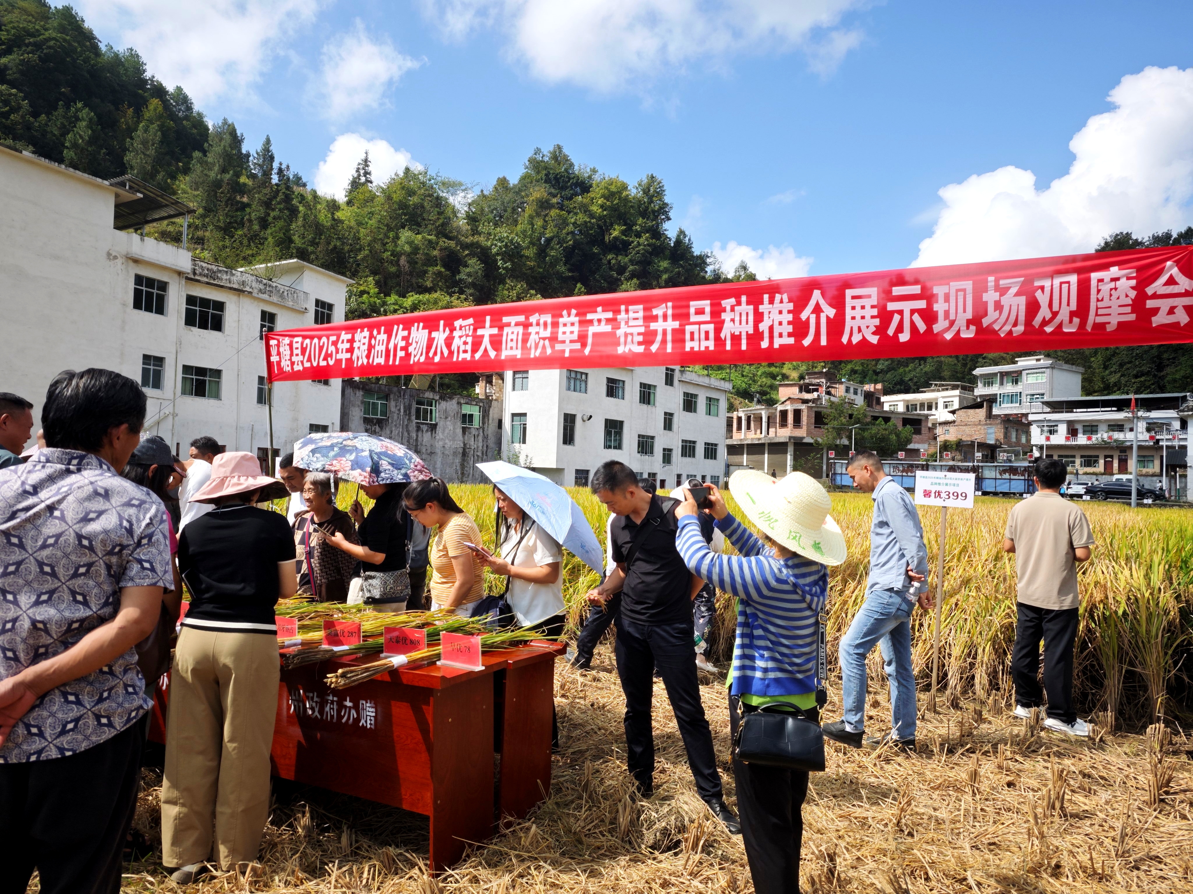 9月28日,平塘县召开2025年粮油作物水稻大面积单产提升品种推介展示现场观摩评价会,集中展示水稻优良品种,并通过专题培训,提升科学选种用种能力,为全县水稻产业提质增效奠定基础。