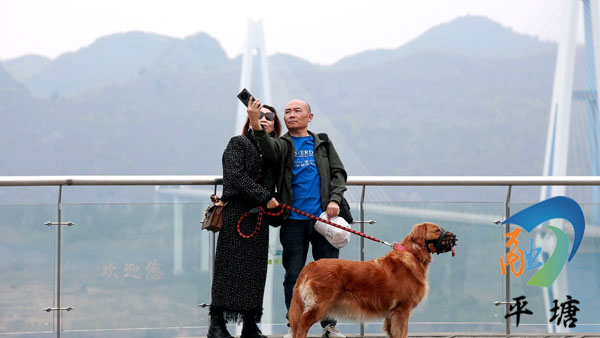 假期第一天,“天空之桥”景区就迎来大量游客,前来近距离观看这座身高与颜值并存的特大桥,感受宏伟建筑与大自然的完美结合。游客们站在观景台眺望远处,不约而同地拿起手机或相机,与身后的平塘特大桥拍照留念。