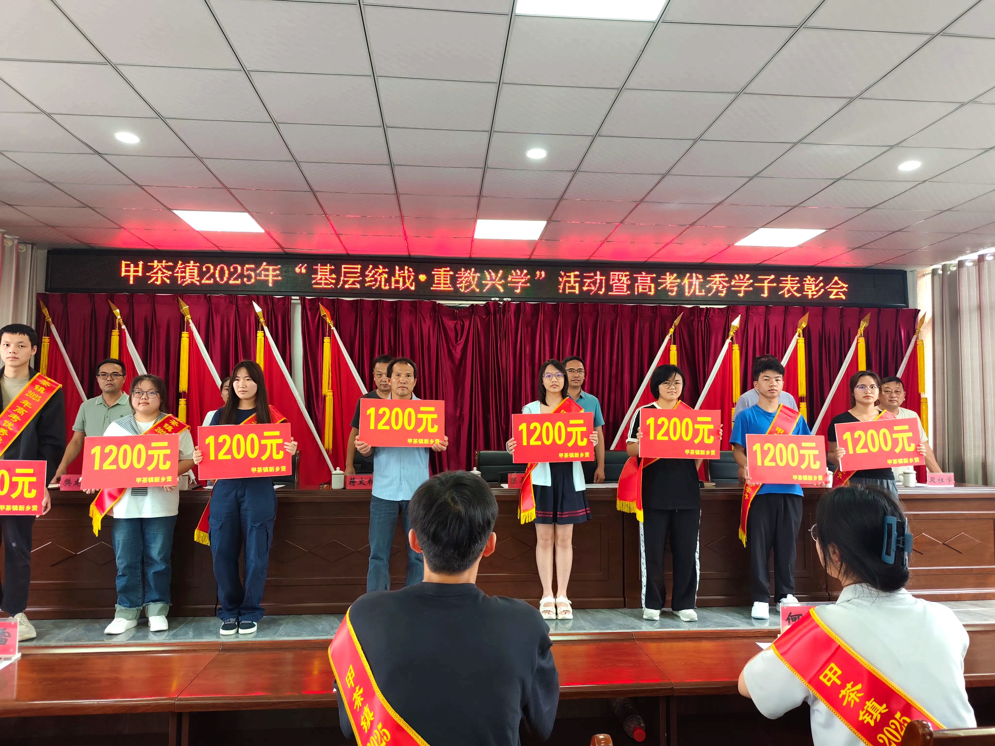 8月22日,甲茶镇举行“基层统战·重教兴学”活动暨高考优秀学子表彰会,为全镇2025年考取大学的17名优秀学子发放助学金21000元。