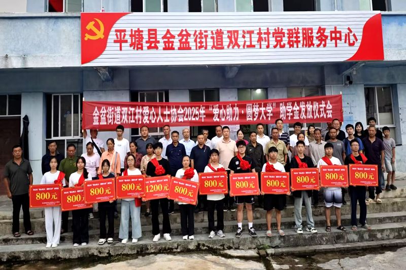 日前,金盆街道双江村2025年度第二届“爱心助力·圆梦大学”奖学金发放仪式举行。
