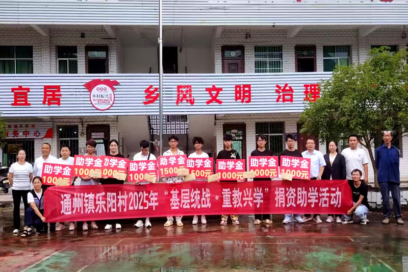 近日,通州镇乐阳村举行“基层统战・重教兴学”助学捐赠仪式,为村内9名即将踏入大学校园的高考学子发放助学金10000元,传递统战温情,助力学子圆梦求学路。